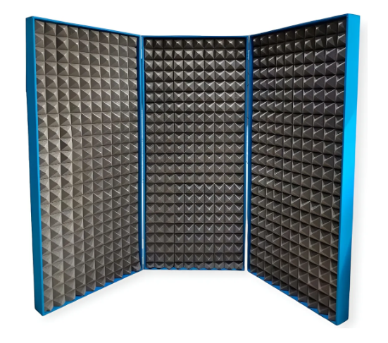 Mampara acústica de 3 módulos, diseñada para optimizar la calidad sonora de cualquier espacio. Su relleno fonoabsorbente reduce eficazmente el ruido ambiental, elimina la reverberación y el eco, lo que mejora drásticamente la claridad de las conversaciones y la inteligibilidad del habla. Ideal para crear ambientes más tranquilos, concentrados y productivos, funcionando también como un práctico divisor de espacios.