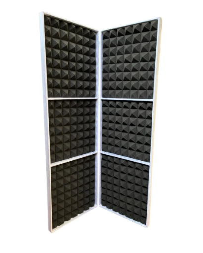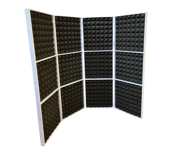 Mampara acústica de 4 módulos, diseñada para optimizar la calidad sonora de cualquier espacio. Su relleno fonoabsorbente reduce eficazmente el ruido ambiental, elimina la reverberación y el eco, lo que mejora drásticamente la claridad de las conversaciones y la inteligibilidad del habla. Ideal para crear ambientes más tranquilos, concentrados y productivos, funcionando también como un práctico divisor de espacios.