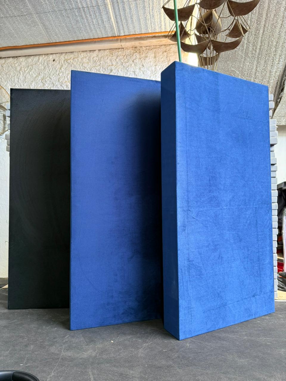 Fabricado con bastidor de madera, laterales y fondo solido, material fono-absorbente, tela tropical mecánico, brindando un resultado estético y funcional ideal para salas de ensayo, grabación, salas de estar, bibliotecas, salas de cine, restaurantes, salas de maquinas industriales.