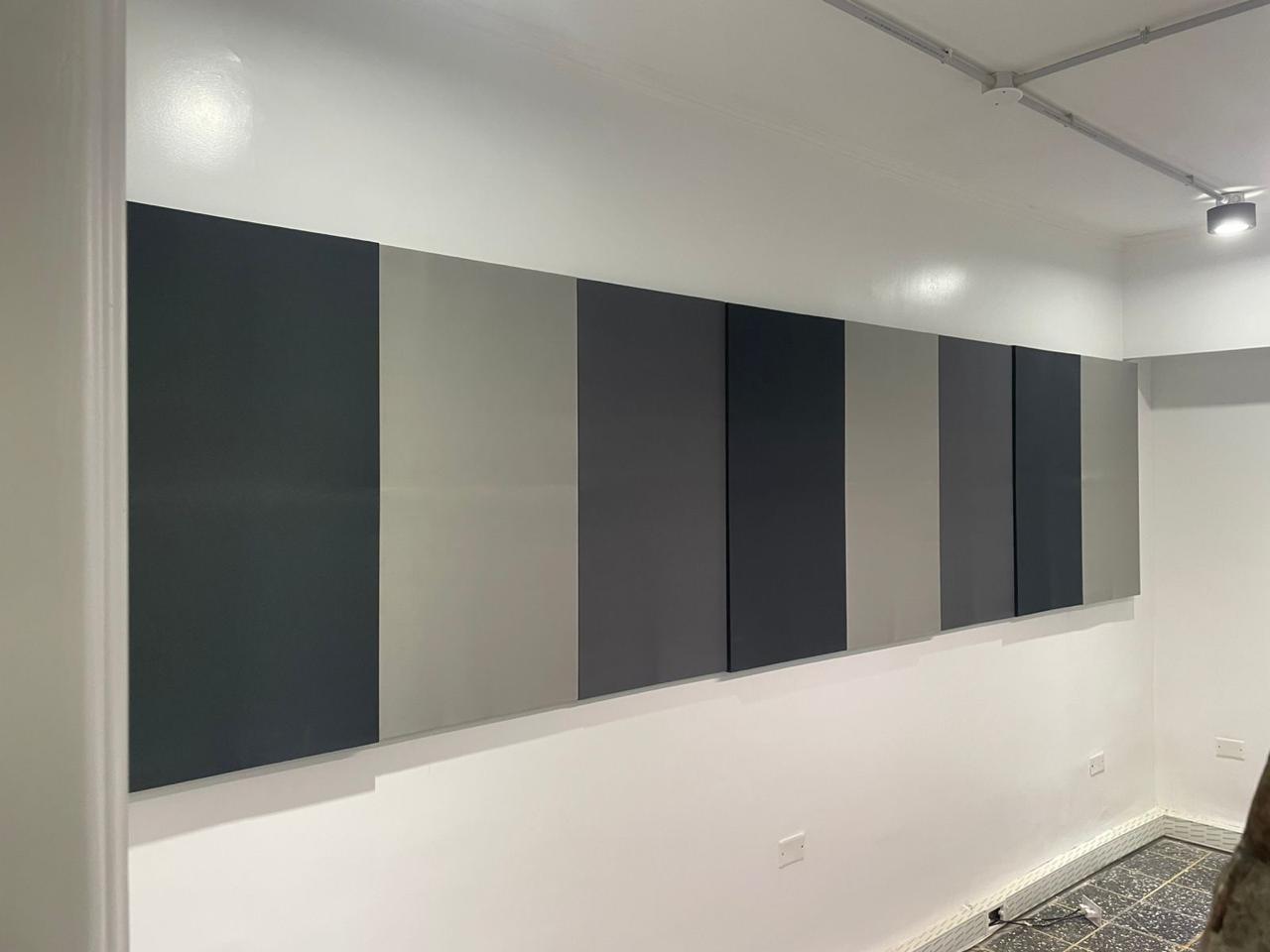 Fabricado con bastidor de madera, laterales y fondo solido, material fono-absorbente, tela tropical mecánico, brindando un resultado estético y funcional ideal para salas de ensayo, grabación, salas de estar, bibliotecas, salas de cine, restaurantes, salas de maquinas industriales.